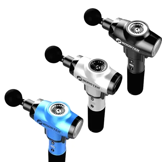 Hvem har ikke opplevd muskelsmerter etter en intens treningsøkt? Teknologien i denne massasjepistolen lar dine ømme muskler restituere raskere. Denne massasjepistolen forbedrer også din bevegelighet. Booster E er designet for å trenge dypt inn i musklene dine. Denne effektive metoden lar musklene dine restituere mer effektivt, en naturlig løsning for alle som driver med fysisk aktivitet. Å bruke en Booster E massasjepistol på musklene som er belastet under trening eller til og med før trening vil forbedre ytelsen og restitueringen av musklene.